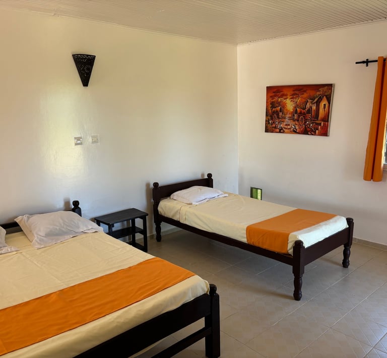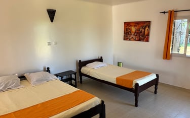 Découvrez notre chambre familiale ( 6 personnes ) confortable, idéale pour se détendre après une journée d'exploration. Profitez de la vue sur le canal des Pangalane et de la plantation d'épices.